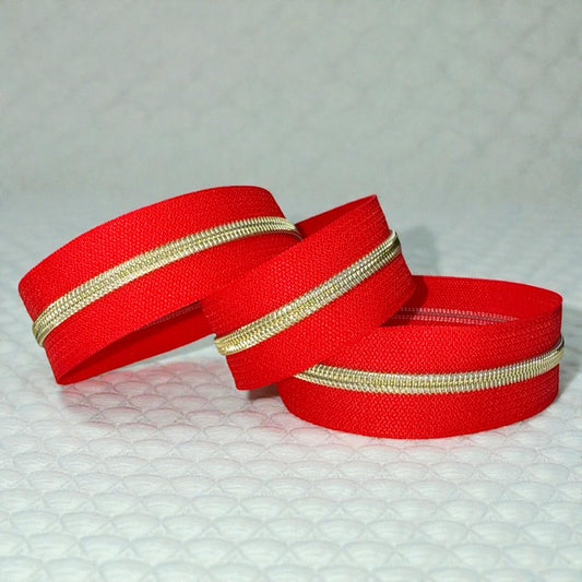 Cherry Red #5 Nylon Zipper Tape- Multiple Metal Finishes Available (Sold by the Yard)