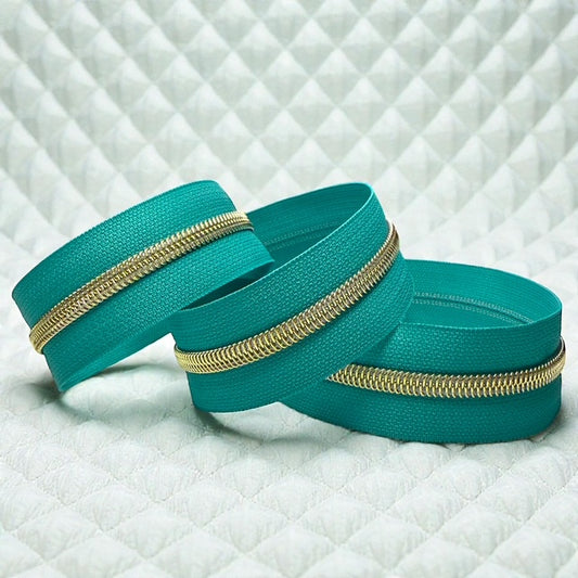 Teal #5 Nylon Zipper Tape - Multiple Metal Finishes Available (Sold by the Yard)